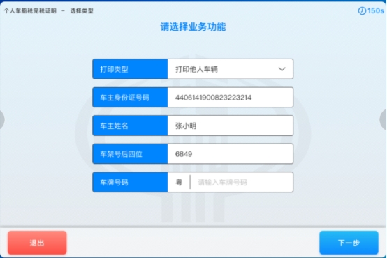 3-1.若纳税人选择的打印类型为“打印他人车辆”,点击【完成】按钮,如下图所示: