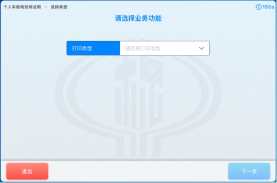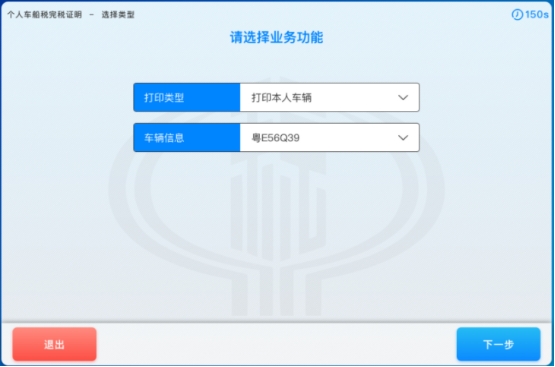 1. 在自助终端机系统主界面中,选择“个人车船税完税证明”功能;