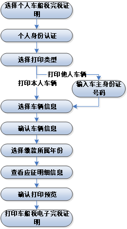 纳税人通过个人用户方式进行身份验证,选择个人车船税功能,选择车辆及输入查询时间后,确认应征明细信息,自助终端打印A4格式的车船税电子税票。