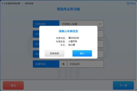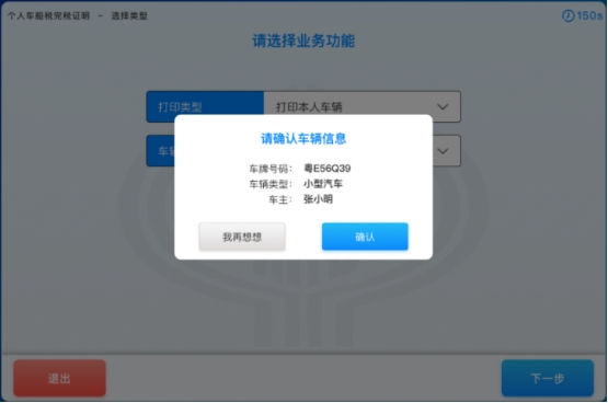 3-2-2.弹出确认车辆信息,纳税人点击【确认】按钮,如下图所示: