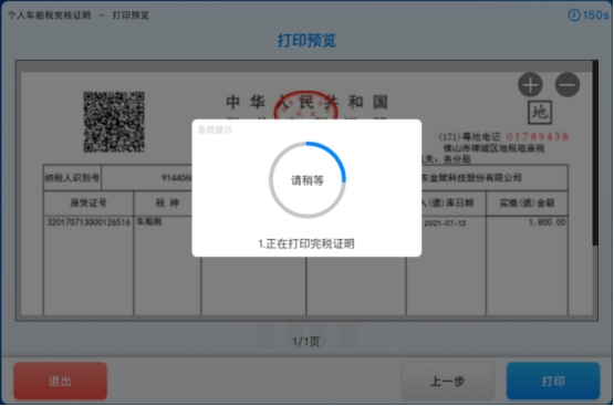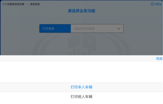3-2.若纳税人选择的打印类型为“打印本人车辆”,点击【完成】按钮,如下图所示: