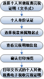纳税人可在全省任意一台自助办税服务终端办理打印个人其他税费(文书式)业务。纳税人通过身份验证后,选择个人其他税费(文书式)功能,输入税费所属期后确认完税明细后,自助终端打印A4格式的税收完税证明文书式。