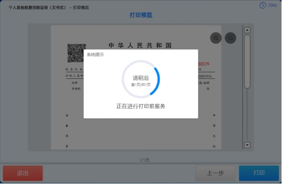 6. 进入打印页面,等待系统打印,如下图所示:
