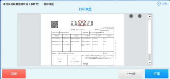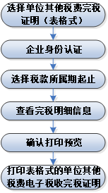 纳税人可在全省任意一台自助办税服务终端办理打印单位其他税费(表格式)业务。纳税人通过身份验证后,选择单位其他税费(表格式)功能,输入税费所属期后确认完税明细后,自助终端打印A4格式的税收完税证明表格式。