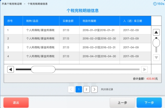 4. 进入“个税完税明细信息”界面中,确认完税明细信息,点击【下一步】按钮,如下图所示: