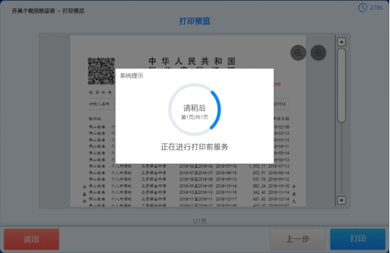 5. 进入“打印预览”界面,预览完税信息,点击【打印】按钮,如下图所示: