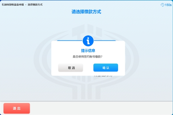 8.1若选择签约账号缴款,系统弹出缴费方式确认提示框,纳税人点击【确认】按钮进行缴款。