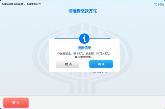 8.1.1若存在滞纳金,系统弹出存在滞纳金提示框,纳税人点击【确认】按钮继续缴纳,如下图所示: