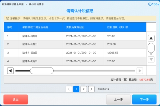 5. 进入“计税信息”确认界面,纳税人确认计税信息,点击【下一步】按钮,如下图所示: