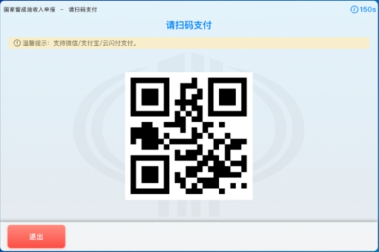 8.2若选择二维码支付,系统进入“扫码支付”界面,纳税人根据系统提示,使用银联云闪付或银联app扫描二维码,并在手机上完成缴款操作,如下图所示: