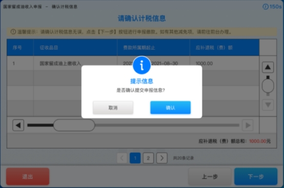 4. 进入“计税信息”确认界面,纳税人确认计税信息,点击【下一步】按钮,如下图所示: