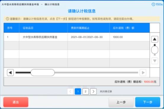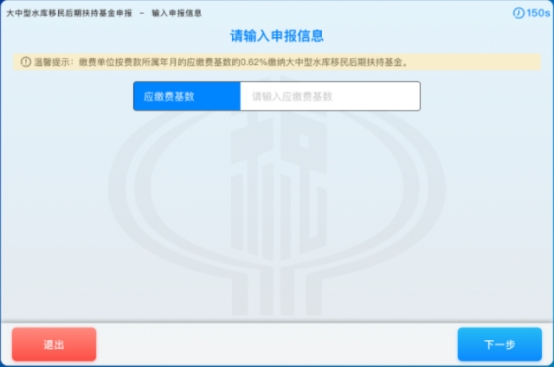 1. 纳税人在自助终端机系统主界面,选择“大中型水库移民后期扶持基金申报”功能。