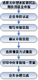 纳税人可在全省任意一台自助办税服务终端通过企业身份登录终端,选择大中型水库移民后期扶持基金申报业务功能后,进行大中型水库移民后期扶持基金申报并提交保存申报信息。