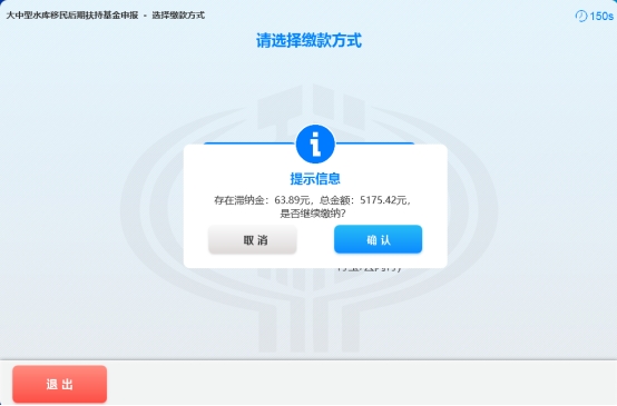 8.1.1若存在滞纳金,系统弹出存在滞纳金提示框,纳税人点击【确认】按钮继续缴纳,如下图所示: