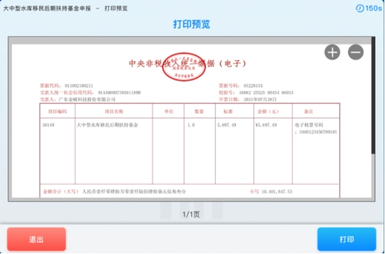 9. 缴款成功后,系统进入“完税证明预览”打印界面,纳税人确认完税证明信息,点击【打印】按钮,如下图所示:
