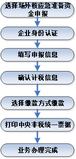 纳税人可在全省任意一台自助办税服务终端通过企业身份登录终端,选择场外核应急准备资金申报业务功能后,进行场外核应急准备资金申报并提交保存申报信息。