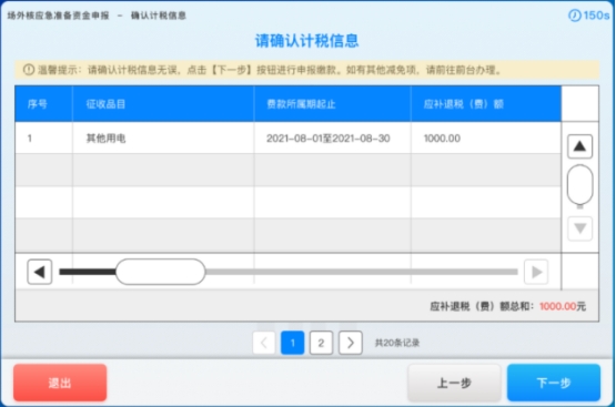 4. 进入“计税信息”确认界面,纳税人确认计税信息,点击【下一步】按钮,如下图所示: