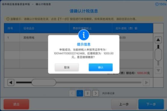 7. 若需进行缴款,系统弹出缴款确认提示框,纳税人点击【确认】按钮,进入缴款流程,如下图所示: