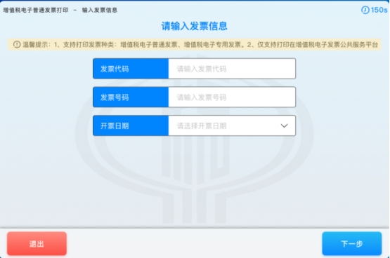 纳税人选择业务功能,输入发票代码、号码等发票信息后,可以打印增值税电子普通发票。