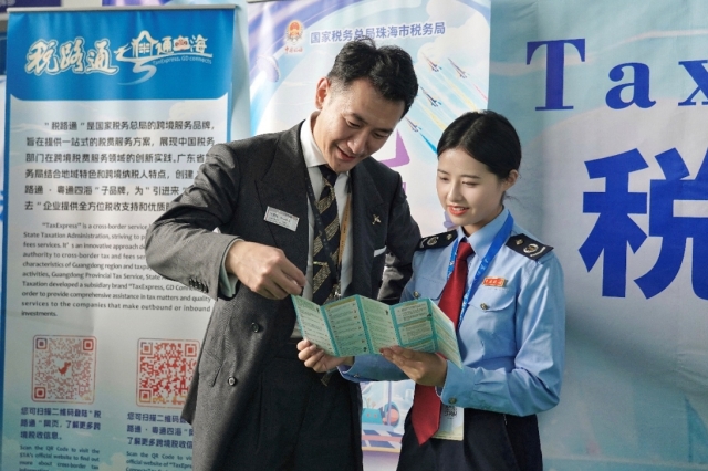 中国航展举办期间,珠海税务部门派出由优秀外语人才和国际税收专家组成的“税路通·粤通四海”多语种服务团队进驻航展现场,搭建税收服务驿站,为中外参展商、采购商和现场观众提供涉税咨询、政策宣讲等服务。团队成员主动前往各大场馆展台,向中外参展商发放跨境税收系列宣传册,面对面开展政策咨询辅导,精准对接参展商在全球化贸易中的涉税需求。