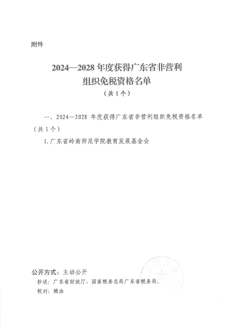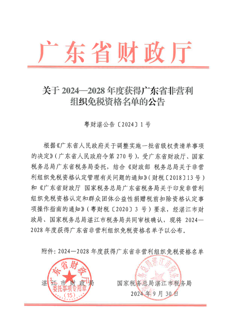 关于2024-2028年度获得广东省非营利组织免税资格名单的公告