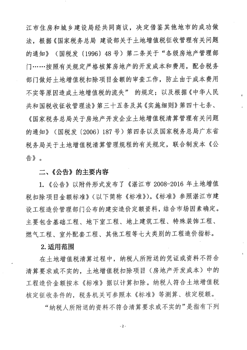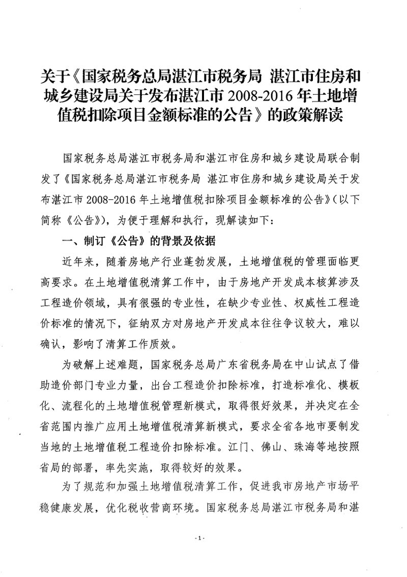 关于《国家税务总局湛江市税务局 湛江市住房和城乡建设局关于发布湛江市2008-2016年土地增值税扣除项目金额标准的公告》的政策解读