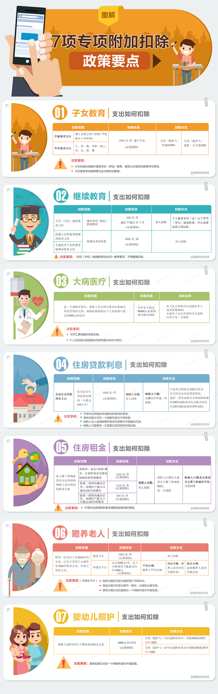 个税专项附加扣除增加到7项了!一张长图告诉你相关政策要点
