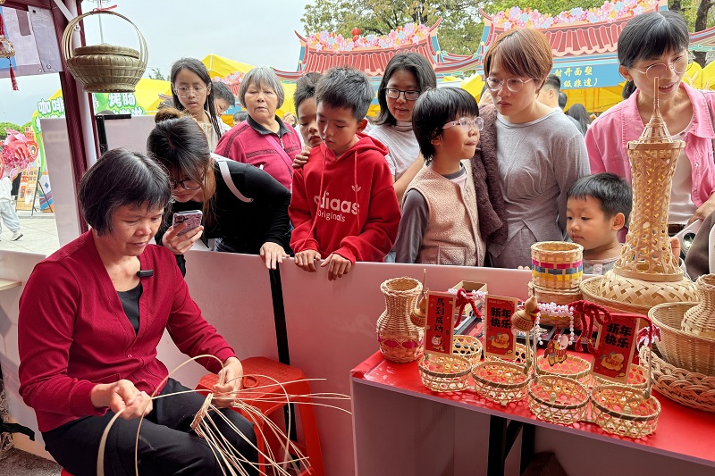 近日,2026肇庆广府文化庙会隆重启幕,非遗“新桥洋篮”展位前人潮涌动。传承人冯结容师傅指尖翻飞,细薄竹丝经纬交错,一只六角果篮渐成形。“这门手艺传了近两百年,因为曾漂洋过海卖到国外,也叫‘洋篮’。”她边编边讲,吸引市民游客驻足观赏。这项始于清咸丰年间的技艺,需经选竹、剖丝、编织等十几道工序,2009年入选市级非遗名录。