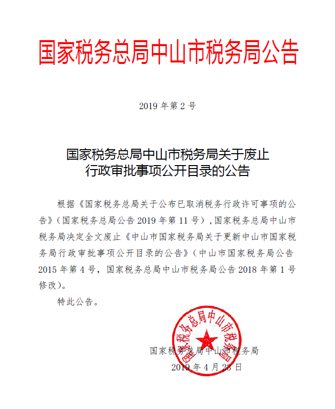 国家税务总局中山市税务局公告2019年第2号