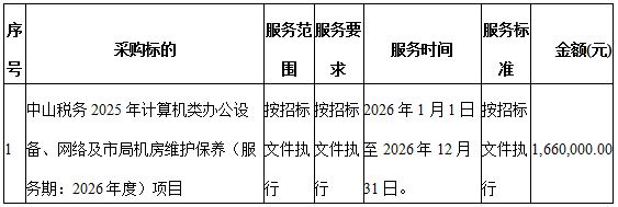 二、项目名称:中山税务2025年计算机类办公设备、网络及市局机房维护保养(服务期:2026年度)项目