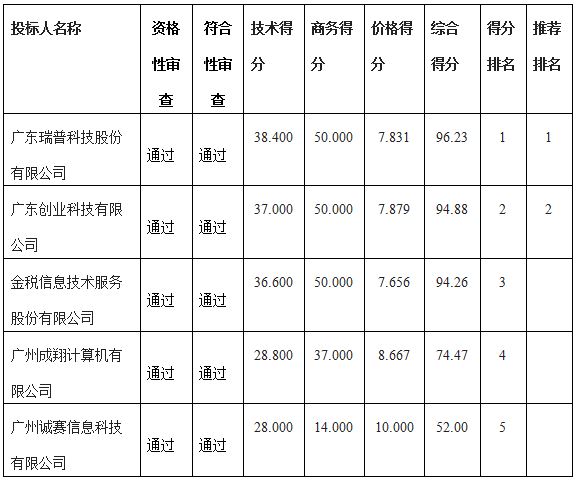 综合评分法中标(成交)候选供应商排序表