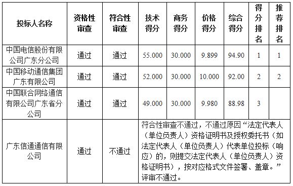 综合评分法中标(成交)候选供应商排序表