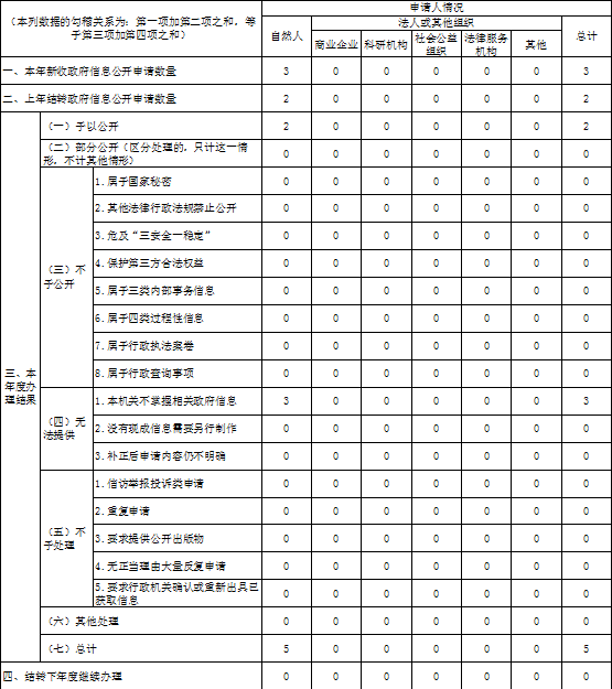 三、收到和处理政府信息公开申请情况