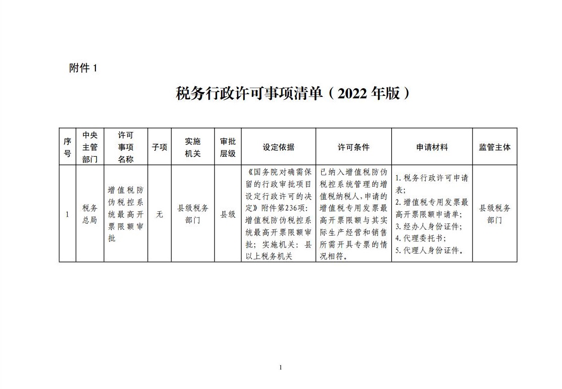 税务行政许可事项