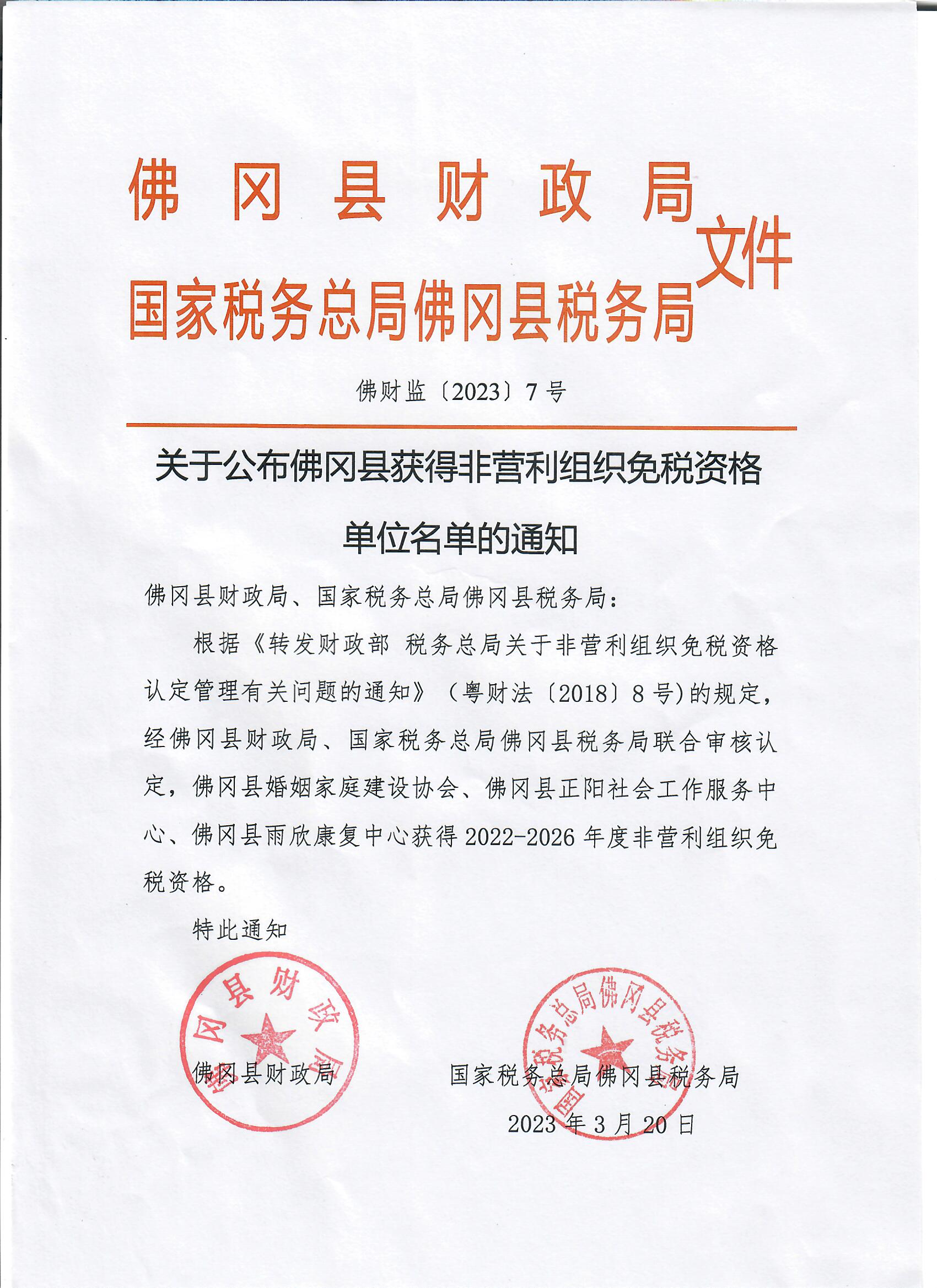关于公布佛冈县获得非营利组织免税资格单位名单的通知