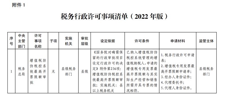 税务行政许可事项