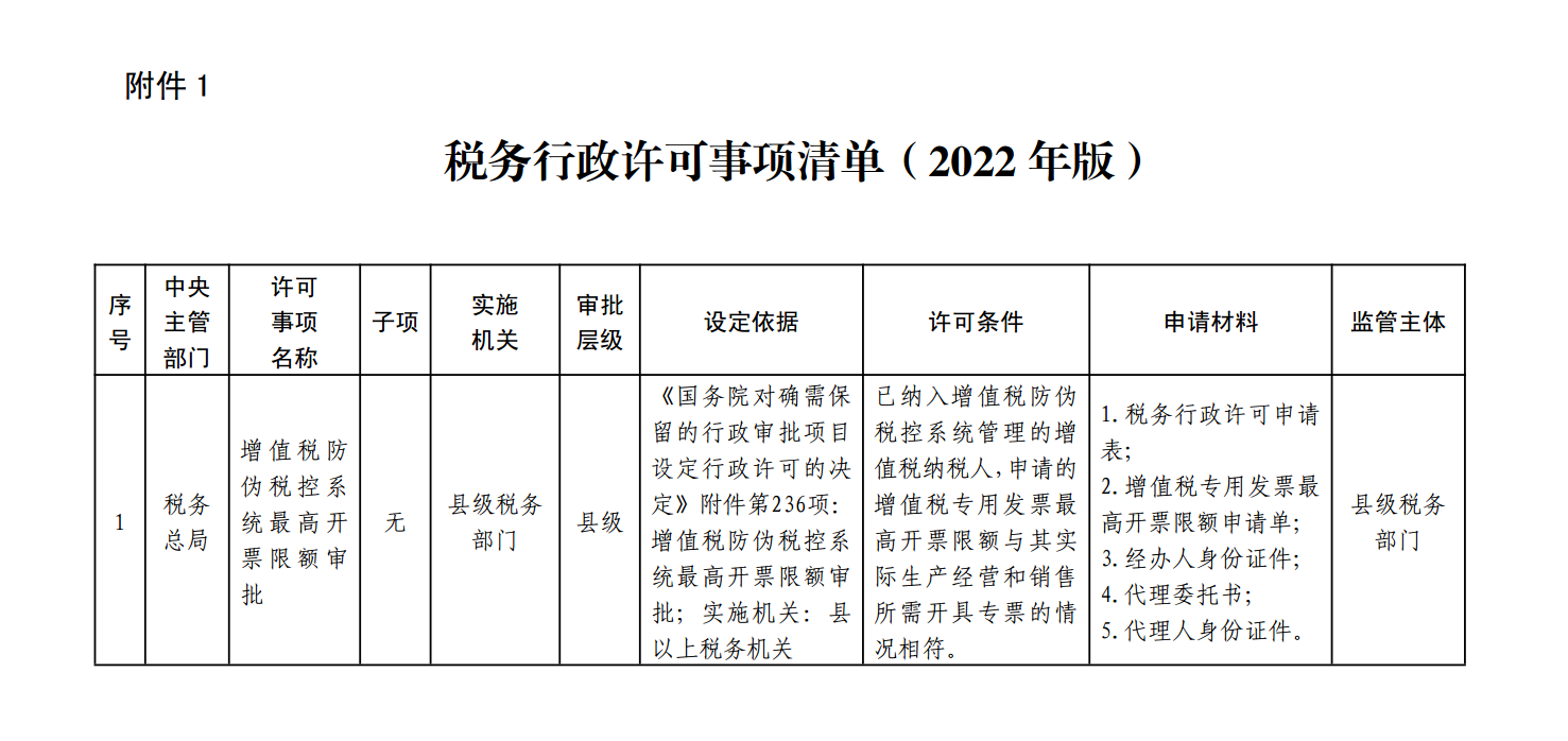 税务行政许可事项清单(2022)