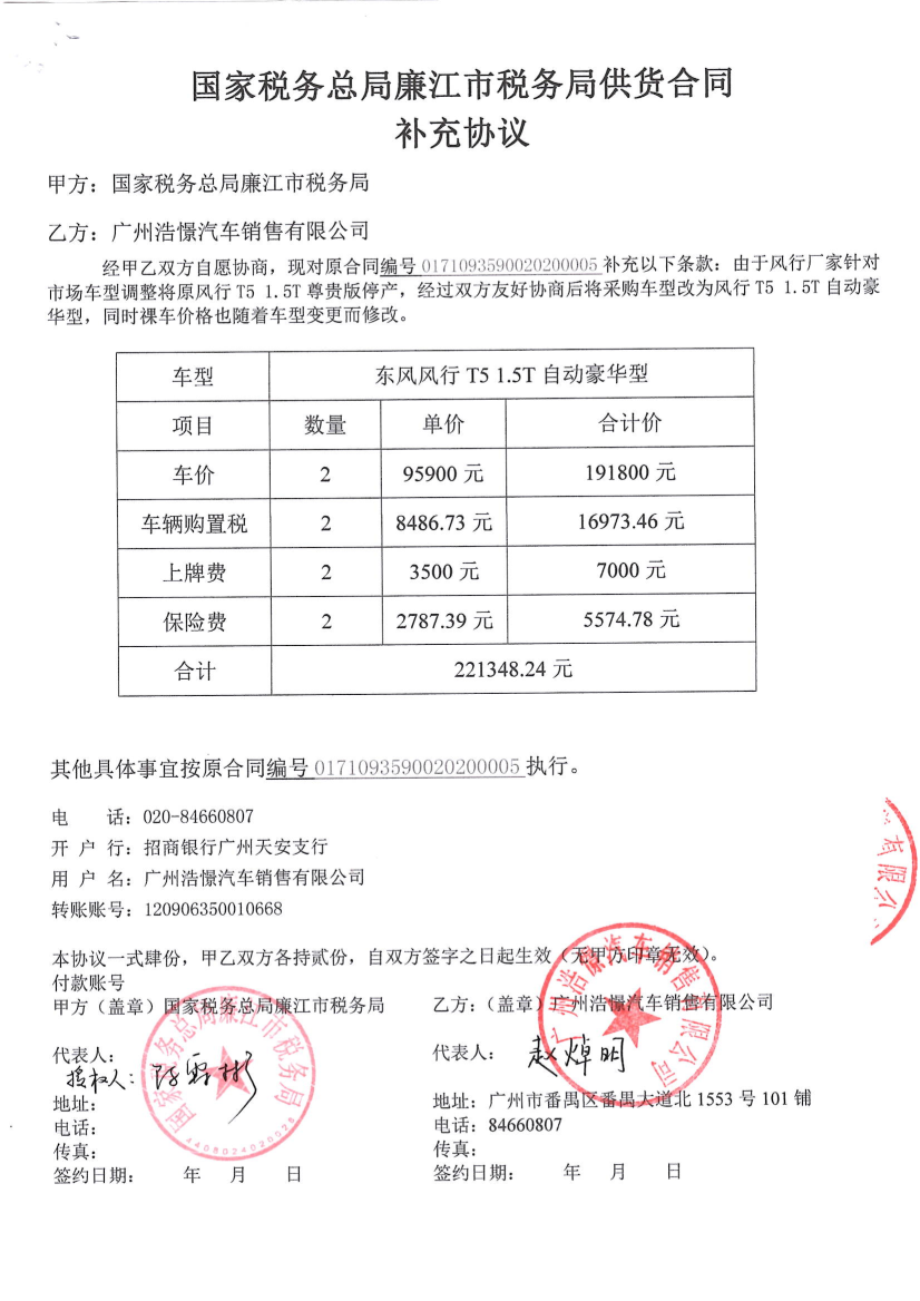 国家税务总局廉江市税务局税务采购网网上交易采购合同(合同编号:0171093590020200005)