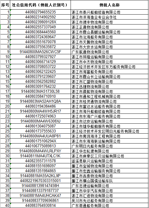 经国家税务总局湛江市税务局研究确定的市级重点稽查对象名录库。
